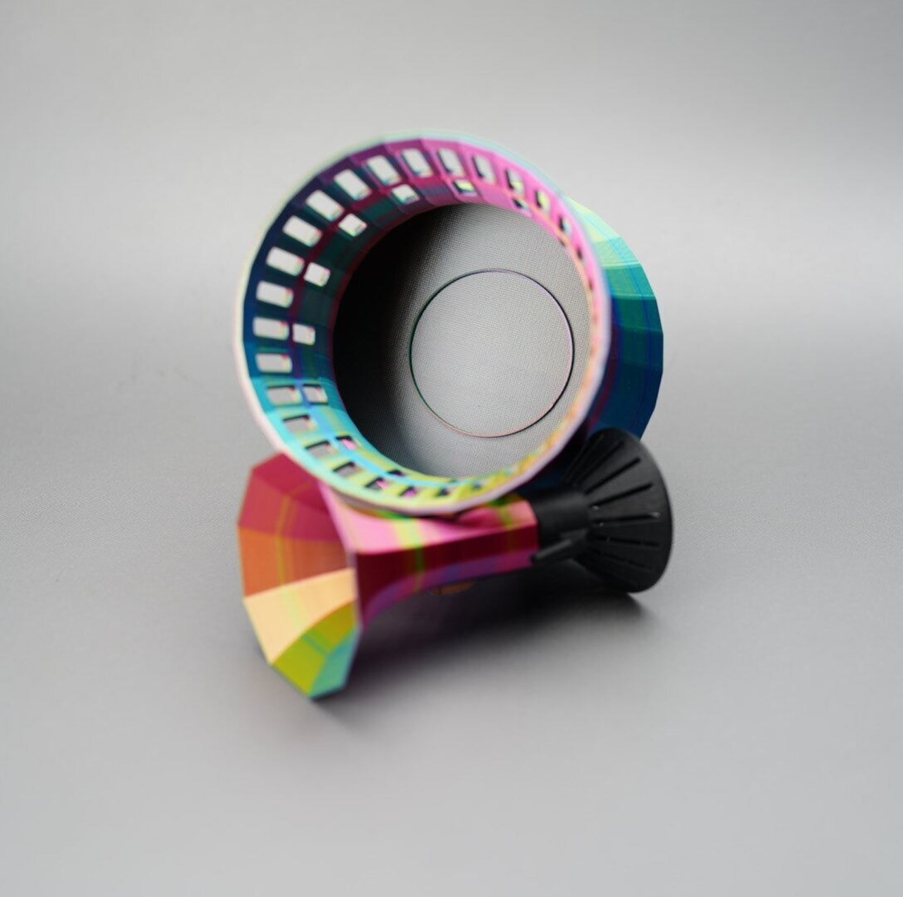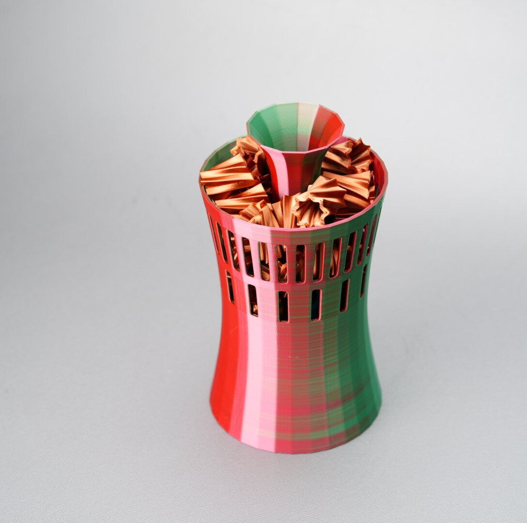 器のサイズ:直径77ミリx高さ120ミリ(大粒ろ過材とパイプを除く)