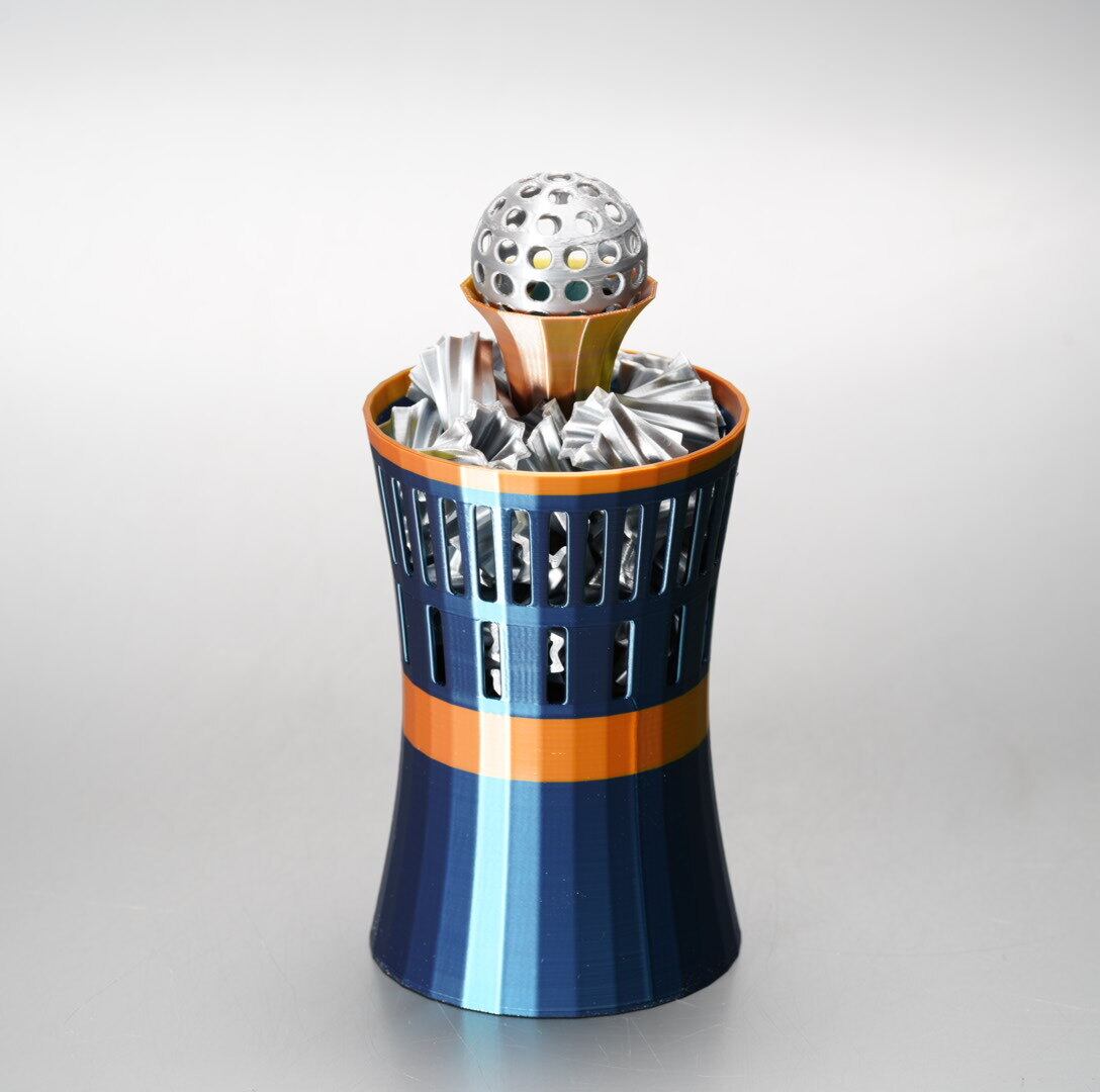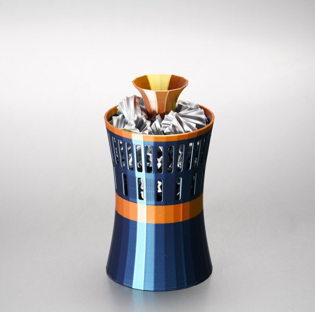 器のサイズ:直径77ミリx高さ120ミリ(大粒ろ過材とパイプを除く)