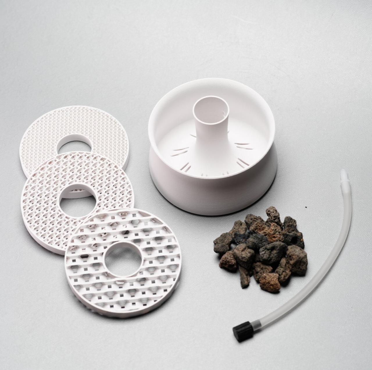 ドーナツグリッド(ろ過材):粗目、中目、細目 各1個、小粒溶岩石(ろ過材)