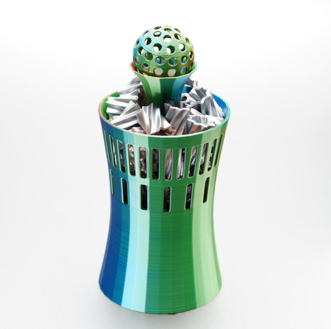 器のサイズ:直径77ミリx高さ120ミリ(大粒ろ過材とパイプを除く)